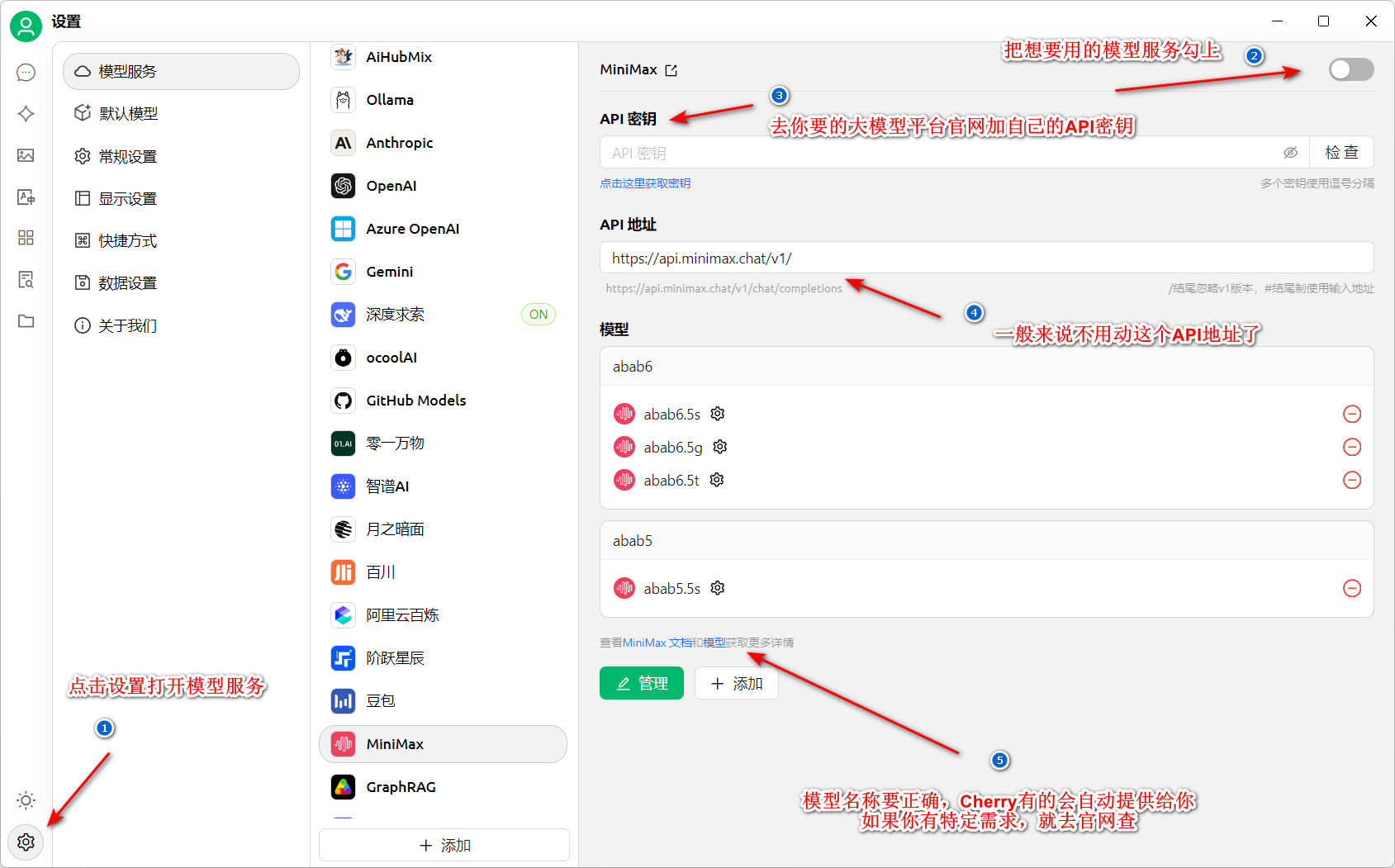 openai api风格的xxxxx/v1格式,不需要手动修改。 - 模型名称和官网一致就行,用你想用的。如果是在不在到,cherry给出了该平台的说明文档地址,查一下。