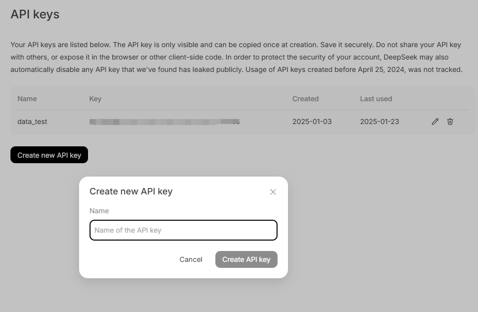 2.2 创建DeepSeek的API KEY