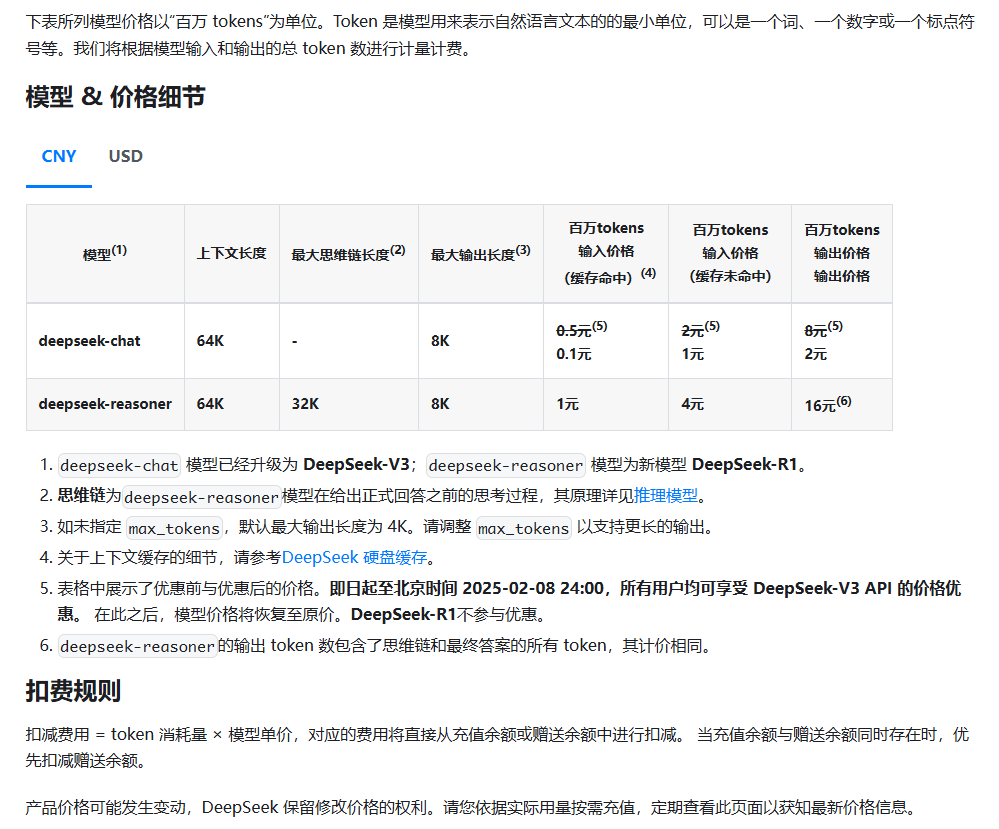 | deepseek-chat | 64k | 0.1(原价0.5) | 1(原价2) | 2(原价8) |