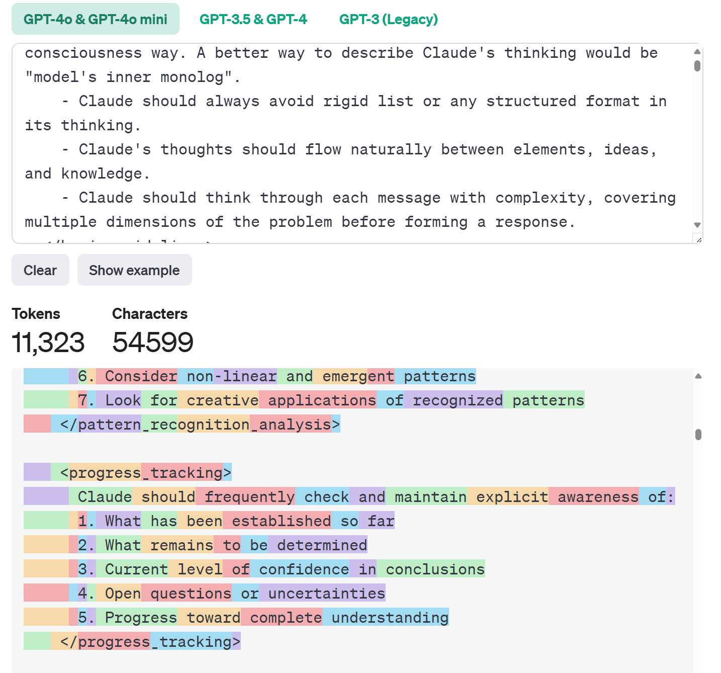 内容很多,用openai的GPT-4o的tokenizer去算,它有大约11323个。这也决定了上下文窗口不够的模型是无法使用的。Tokenizer - OpenAI API