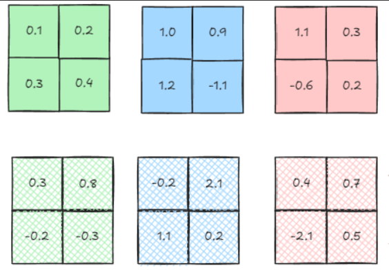 - C (Channels):通道数,在视觉领域,我们将特征图的数量称为通道。比如RGB,就是三种颜色的通道。